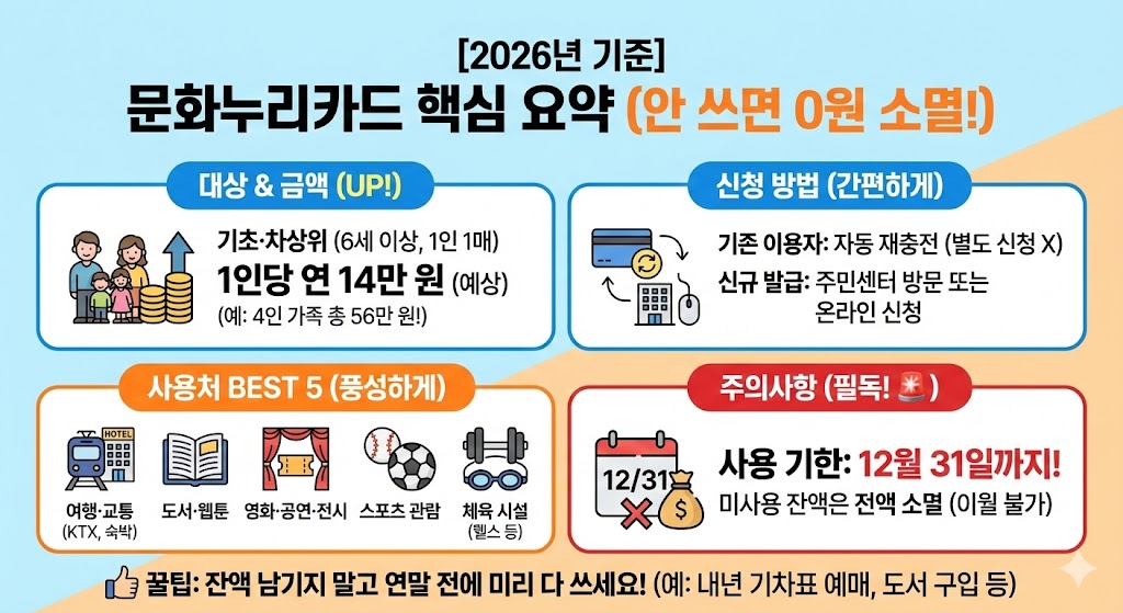 [2026년 필독] 영화, 여행, 공연이 다 공짜? 안 쓰면 100% 사라지는 '문화누리카드' 신청 & 200% 활용 꿀팁 완벽 정리
